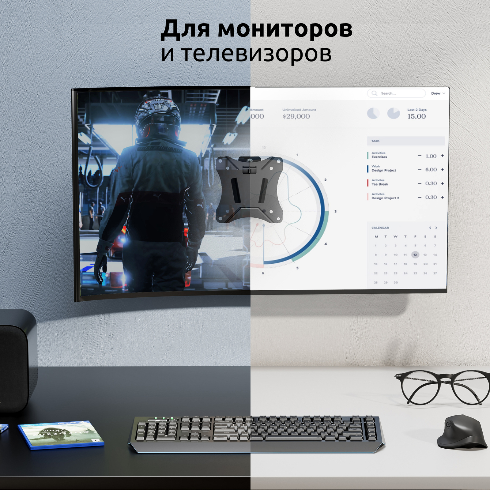 Обращаем внимание, что при выборе кронштейна необходимо ориентироваться на несколько параметров: стандарт VESA (расстояние между крепежными отверстиями), диагональ экрана, вес монитора или ТВ и нагрузка на кронштейн.