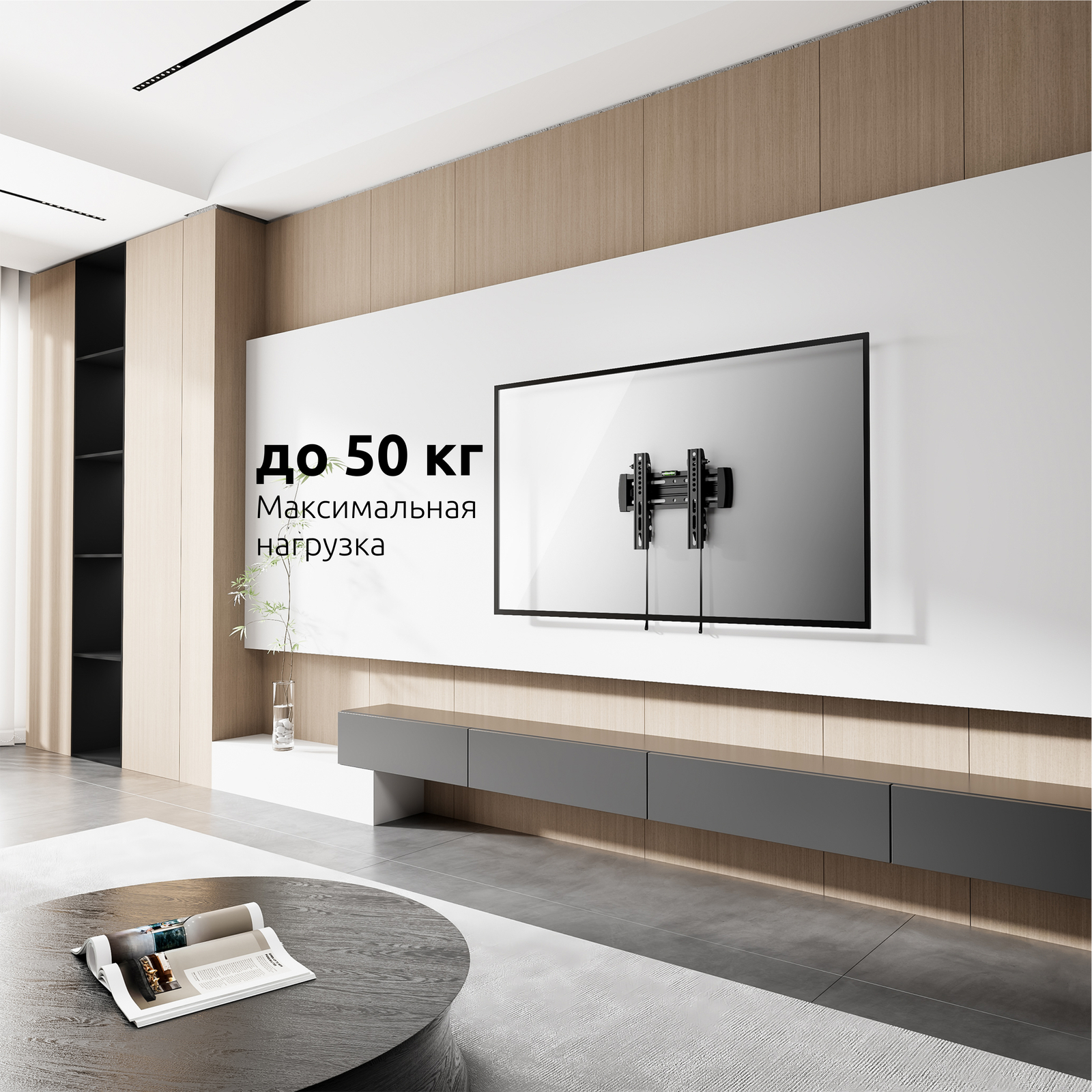 Максимальный выдерживаемый вес составляет 50 кг., что делает кронштейн подходящим для достаточно больших digital-панелей.