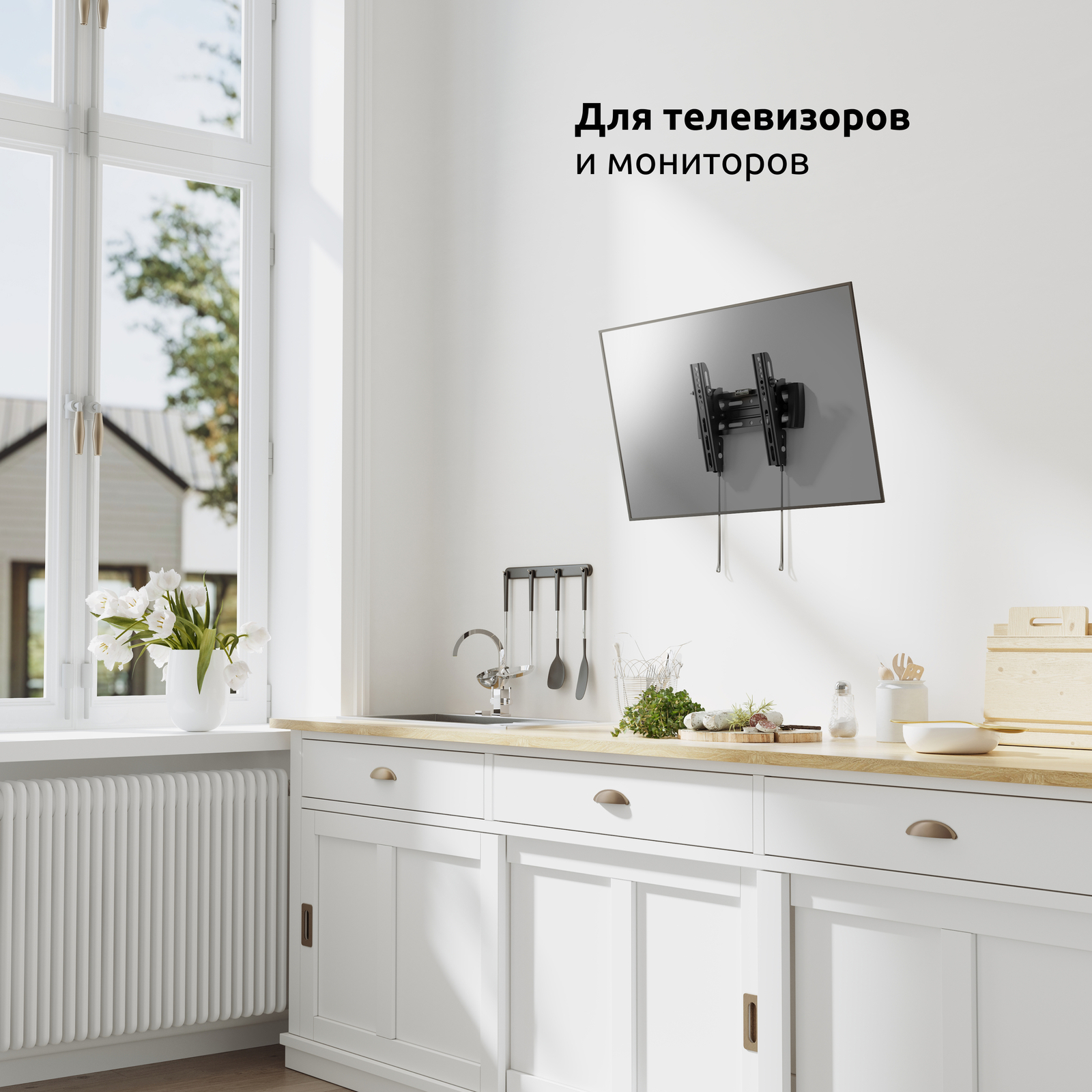 Кронштейн подходит для большинства телевизоров и мониторов популярных брендов, среди которых Samsung, LG, Sony, KIVI, Tcl, Xiaomi Mi, SUPRA, Panasonic, Hyundai, Erisson и других.