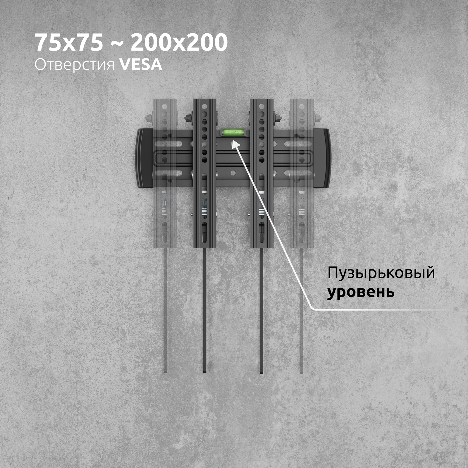 Кронштейн поставляется в оригинальной упаковке, с подробной инструкцией и широким набором креплений для настенной инсталляции.
