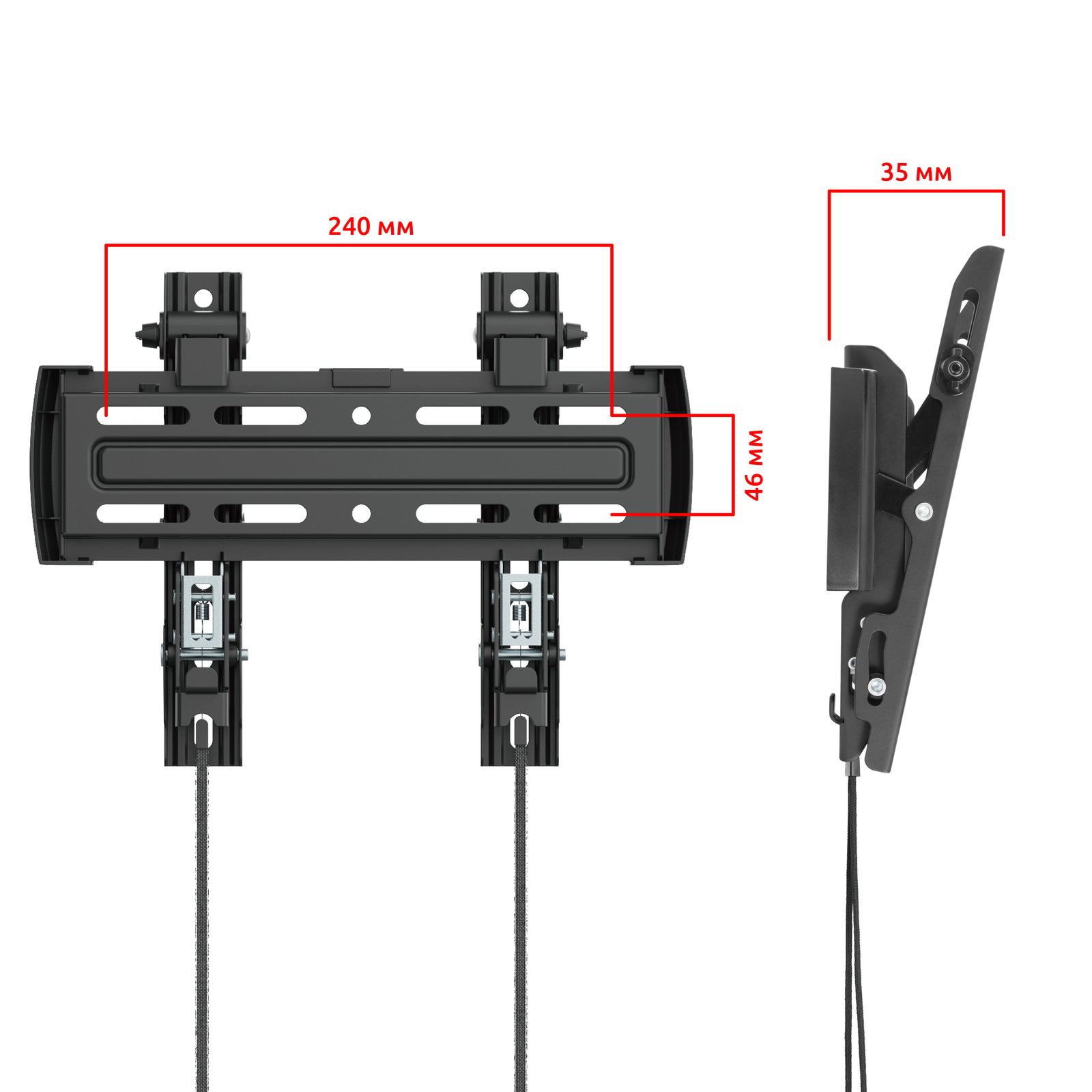 Широкий выбор вариантов монтажных отверстий для установки на стену позволяет надежно зафиксировать кронштейн.