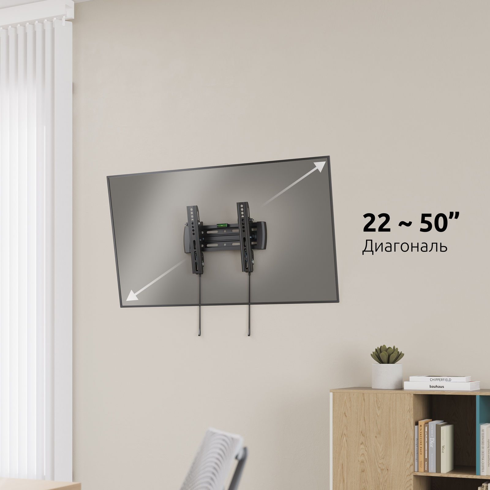 Кронштейн для телевизора настенный, быстросъемный, с удобными барашками регулировки наклона, диагональ 22-50 дюймов