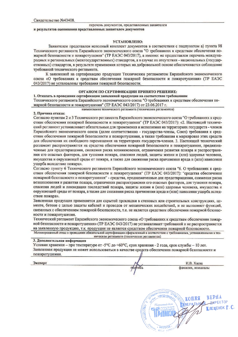 Тип по степени сопротивления сжатию (деформация при заявленном усилии сжатия не более 25% ±5% от начального диаметра) не менее 350Н - тип «Лёгкая» |